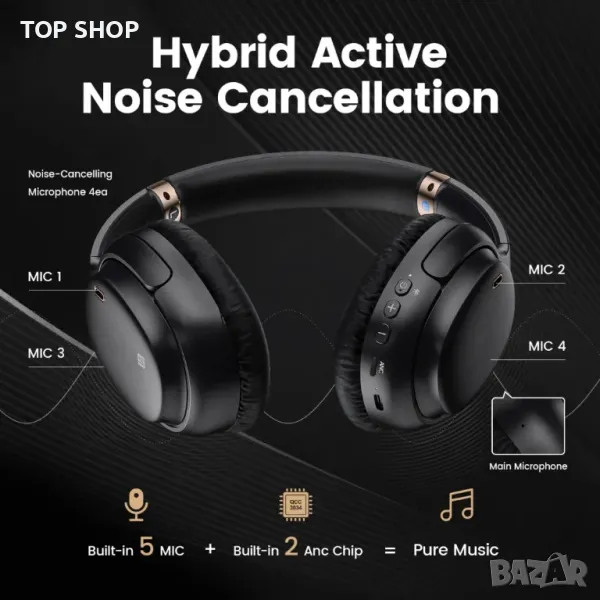 1Mii Ankbit E600Pro Слушалки с активно шумопотискане и хендс фри
