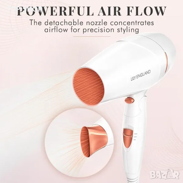 Сгъваем преносим пътен сешоар Lily England, Розово злато, 1800 вата
