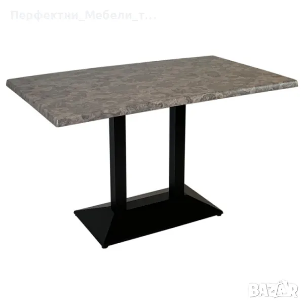 Метална основа с покритие от неръждаема стомана. Подходяща е за вътрешно и външно обзавеждане. Основата е с размер 70/40 см. Плота на масата е верзалит с размер 120/70см. / 140/80 см.