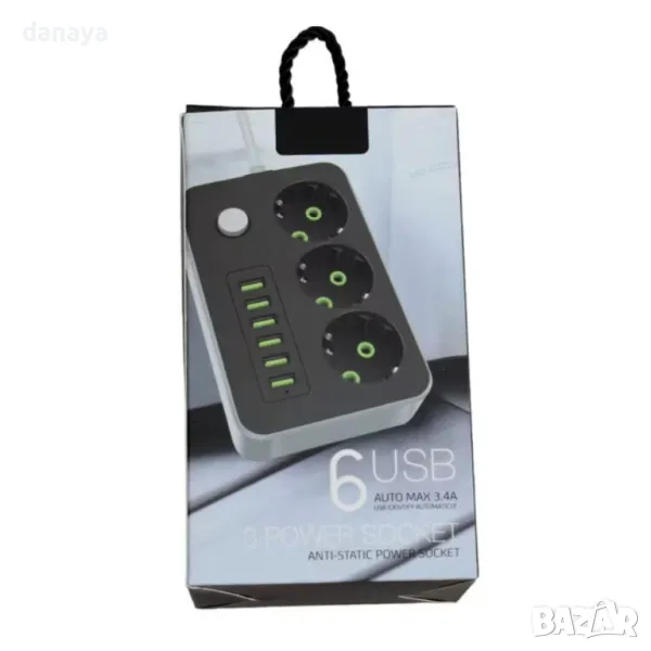 Търсите практично решение за зареждане и свързване на вашите устройства? Този разклонител е идеалният помощник за дома или офиса! С три стандартни гнезда и цели шест USB порта за бързо зареждане, ще захранвате всичко необходимо с лекота.