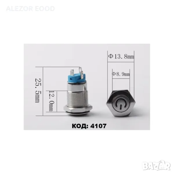 Бутонен превключвател, метал, Off/(On); (On)/Off; (On)/Off 2 позиции