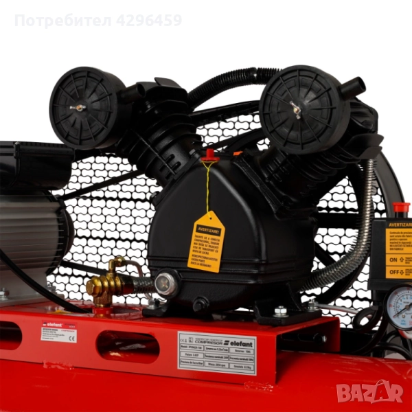 Този модел компресор за въздух е отличен избор за тези, които се нуждаят от мощен и ефективен компресор в различни индустриални и домашни приложения. С впечатляващата мощност от 3 HP (конски сили), компресорът предлага изключителна производителност и надеждност в здрав и лесен за използване дизайн. Благодарение на максималното работно налягане от 8 бара, въздушният компресор XY2065A-100 на Elefant може да се справи с широк спектър от задачи, включително използването на пневматични инструменти, продухване с въздух, професионално боядисване и много други. Независимо дали сте професионалист или ентусиаст "направи си сам", този компресор ще ви помогне да завършите успешно вашите проекти. Компресорът работи при номинално напрежение от 220 V и номинална честота от 50 Hz, което го прави съвместим с повечето източници на електричество. Скоростта от 2850 оборота в минута на компресора осигурява бърза и ефективна работа при генерирането на сгъстен въздух. С голям резервоар от 100 литра, моделът позволява съхранение на голямо количество сгъстен въздух за по-късна употреба. Това е особено полезно, когато имате нужда от постоянен въздушен поток или когато използвате пневматични инструменти за по-дълги периоди от време без спиране на компресора. Големият капацитет на резервоара също така спомага да управлявате различни задачи и осигурява стабилна и непрекъсната работа със скорост на подаване на въздух от 330 л/мин. Здравата конструкция и качествените компоненти осигуряват дълъг живот на компресора и устойчивост на износване.
