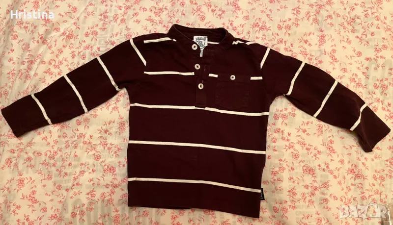 Нова детска блуза с дълъг ръкав размер 98. Има джобче в горния ляв ъгъл и копченце за закопчаване 100% памук.