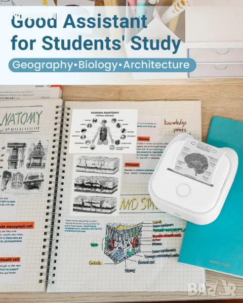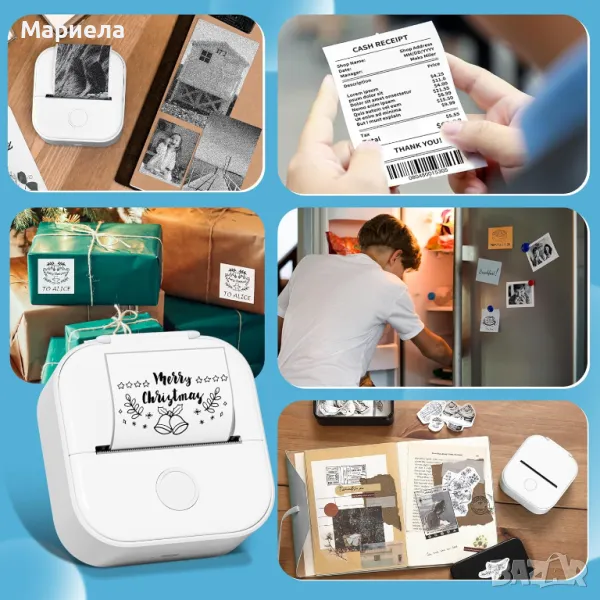 Промо Мини принтер Phomemo + 9 цветни ролки / Детски принтер за стикери