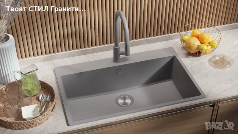 Сив кухненска мивка от гранит Рига 80 XXL 780 x 500 мм → Обява 48625895