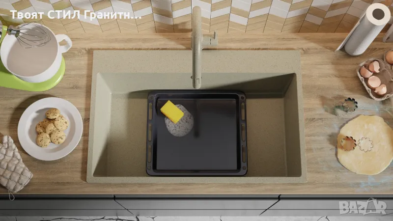 • Компактна интеграция: Макар и с голям капацитет, мивката е проектирана да заема минимално пространство на плота.