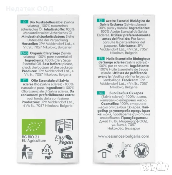 Био етерично масло Салвия скларея – срещу хормонален дисбаланс и месечни неразположения, 10мл → Обява 48626644