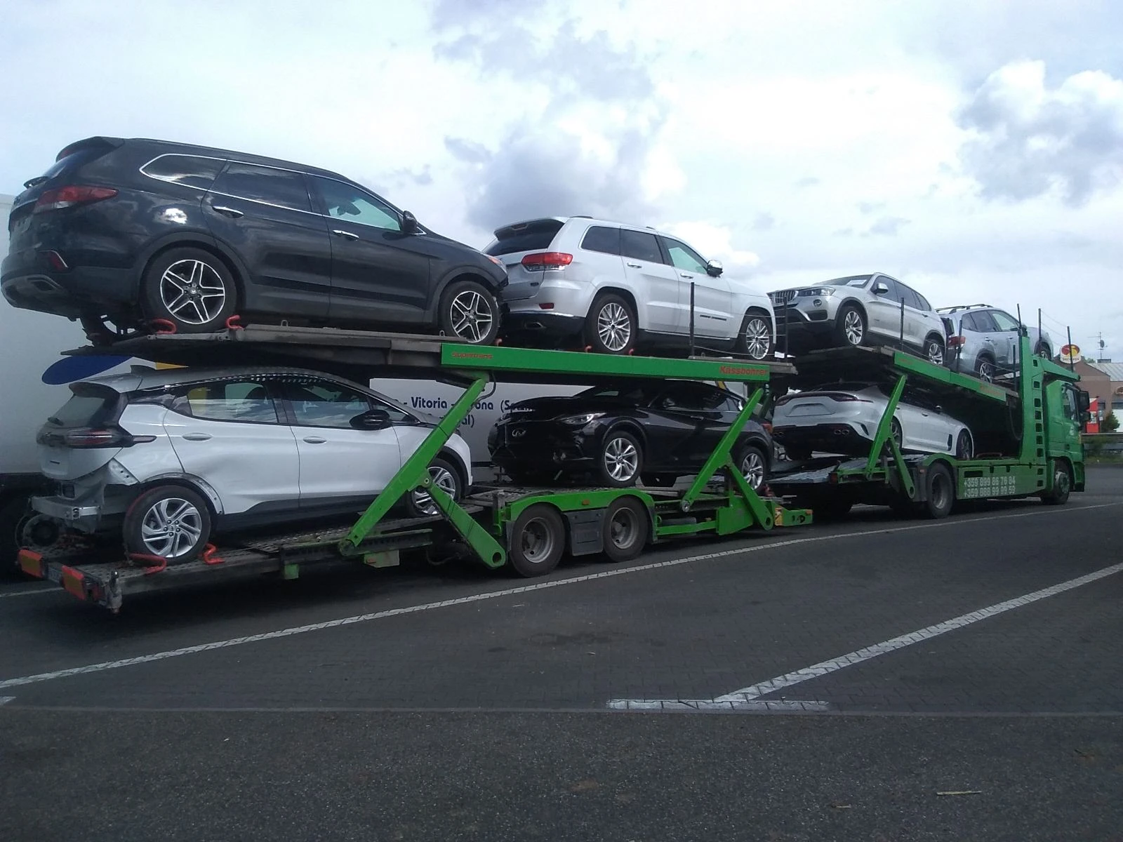 автовоз (колани Lohr, кучки , резервни маркучи, крик, ключ за гуми, мадкап, маркуч за въздух, хладилник, резервни джанти с гуми, букса за аварийно пускане на помпата за рампите и тн. и тн. Гресиран и готов за път. Камиона е пълен автоматик. Ретардер. Работеща печка и климатик. 700 л. резервоари. Конструкция Kassbohrer Supertrans/Supertrans. Всички колове и въжета са сменени преди около 6 месеца. Предни гуми Мишелин на 90 %. Гуми на диференциала Йокохама на 70 %. Гуми ремарке Гудиер/Барум на 90 %. Последно е обстойно прегледан в сервиза и е сменено всичко належащо, като след това не е пътувал. Последно сменени по-сериозни неща: -Пълен основен ремонт на мотора (бутала, сегменти, лагери, глави) преди 100 000 км. -Пълен рамонт на рампите на ремаркето по конструкцията преди 10 месеца. Лагери, втулки, въздушни контри, разпределители, тефлонови втулки на краката и т. н. -Модулатор налягане ABS преди 8 месеца. - НОК сензор+дозатора за AdBlue. -Рециклиран превантивно алтернатор преди година. - Бутилка въздух ремарке преди година. -2 бр. възглавници ремарке преди година. -Тампони двигател, спирачни маркучи, въздушни клапани по цялата конструкция, щанга скорости, амортесьори ремарке преди година. -Цялата тръба на моторната клапа преди 8 месеца. -Всички водни съединения за ретардера преди година. -Рециклирани 2 бр. цилиндри ремарке преди година. -Клапан ръчна спирачка ремарке преди година. Това са само по-големите ремонти, като повечето са направени превантивно. За всичките имам фактури като доказателство. Възможен бартер за автомобил/и.