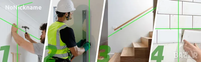 • Лазер: Три режима със зелен лъч: хоризонтални/вертикални/напречни линии