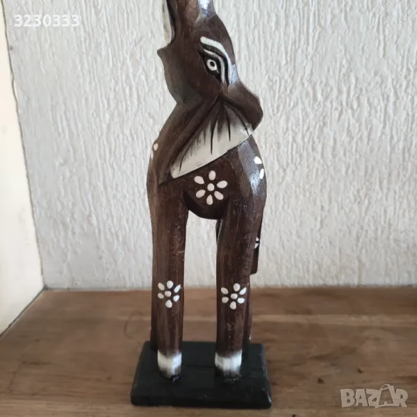 Красива дървена фигура на слон с повдигнат хобот за щастие ,късмет, пари и защтита на дома. Ръчно изработена,без забележка. Расмери-височина -31 см.,основа-8.5 см. По Еконт с 10% отстъпка.