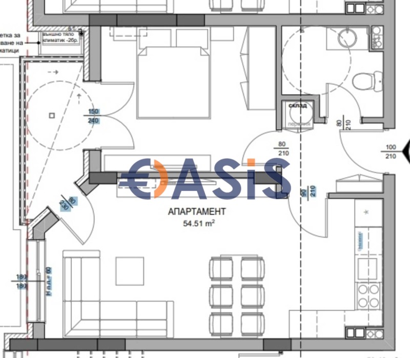 Обща площ: 59,47кв. м.