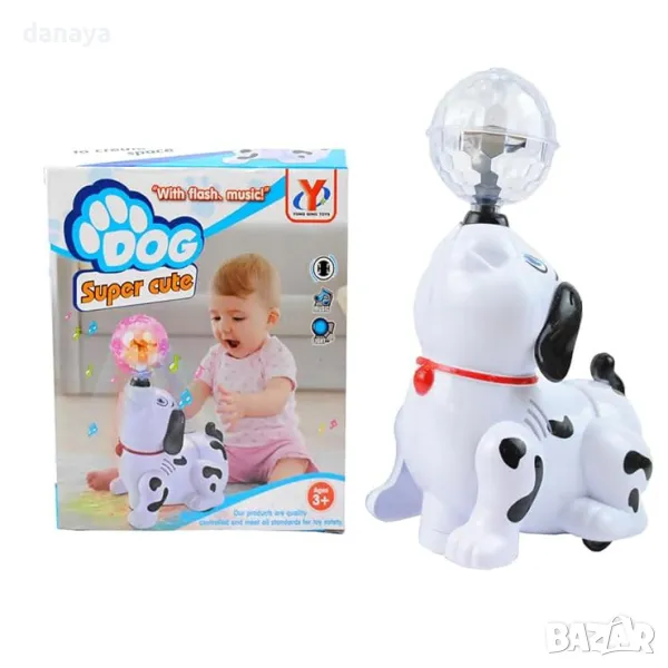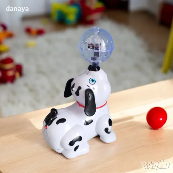 Направете играта на вашето дете незабравима с музикалната играчка Куче с въртяща топка! Това забавно кученце е създадено да впечатлява – докато се движи, то държи в муцунката си диско топка, която се върти и създава вълшебна атмосфера. Играчката лае и възпроизвежда весела музика, добавяйки още повече радост към играта.