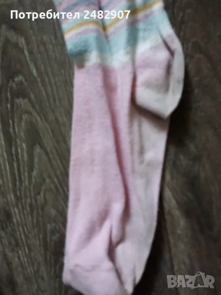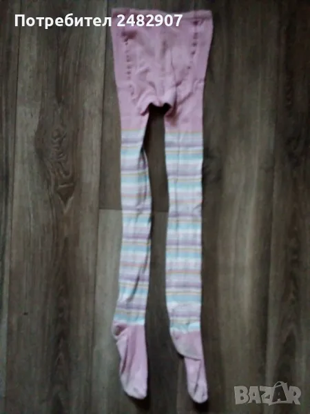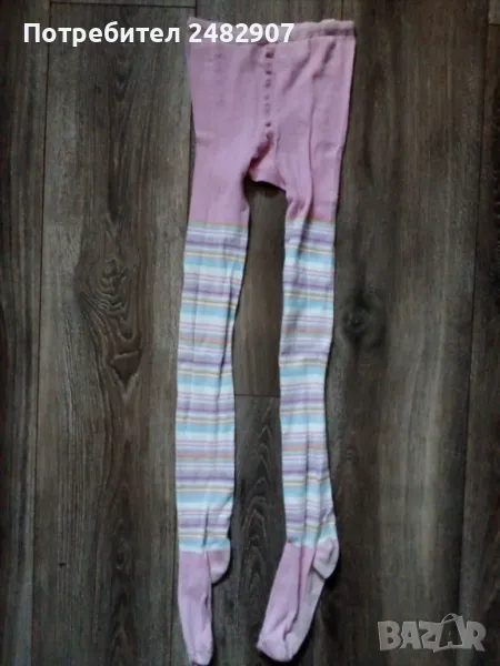 Детски памучен чорапогащник в розово. Ширина в талията - 23 см, дължина от талията до долу (до върха на стъпалото) - 86 см. Запазен, с нормални следи от износване.