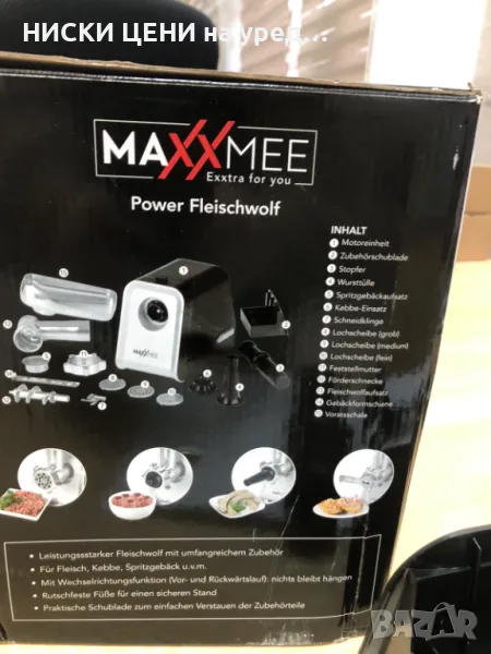 Месомелачката MAXXMEE с мощност 1600W е електрически уред, предназначен за ефективно смилане на месо и приготвяне на домашна кайма. Този модел е оборудван с мощен 1600-ватов мотор, който осигурява бързо и качествено смилане на различни видове
