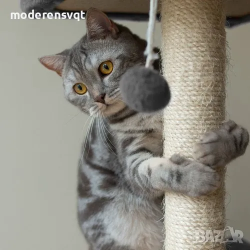 4 ЕТАЖА - подовете на котешкото дърво са облицовани с изключително мека козина, която гарантира комфортна почивка с мъркане на фона. Основното предимство на дървото е шезлонгът. Котето ще може да си почива на воля. 4 нива за наблюдение задоволяват любопитството на котката. В случай на скука можете да потърсите и мека топка / играчка, монтирана на ластик - можете да я хванете и атакувате.