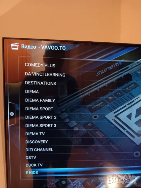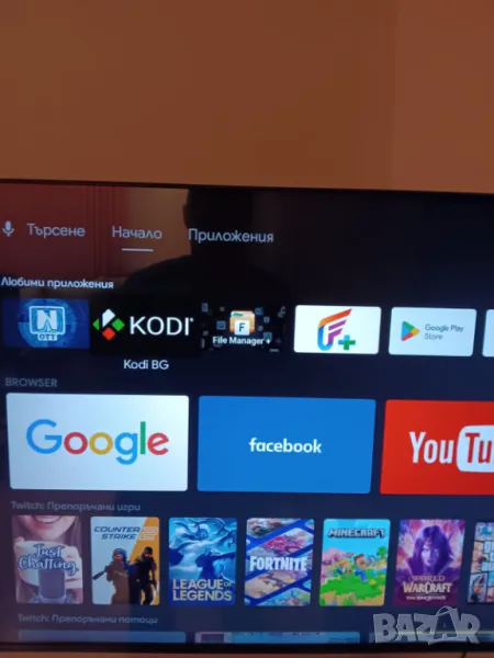Има инсталирано българското KODI с добавки за филми и телевизия