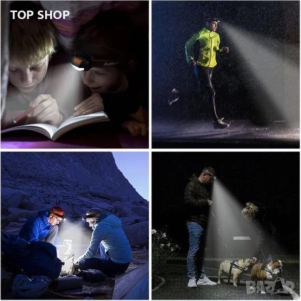 Светодиодно фенерче Autkors,Супер ярък фар за глава, лек,удобен при бягане, риболов