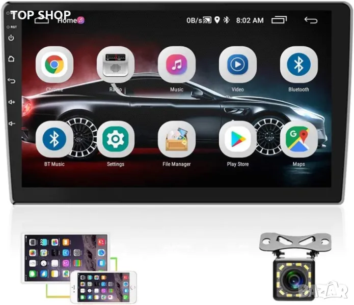 Android Auto и Apple Carplay Мултимедия за кола - 10-инчов сензорен екран + камера