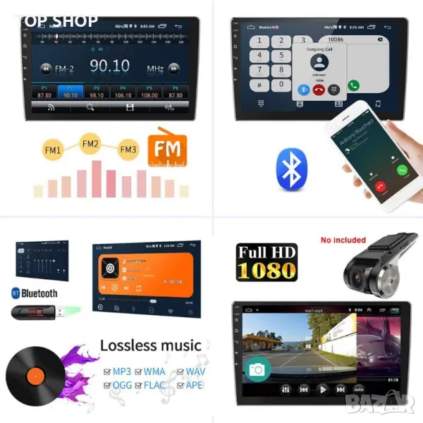 Радио за кола с Bluetooth FM: главно устройство с Android с Bluetooth, можете да провеждате разговори със свободни ръце и да възпроизвеждате безжична музика, когато сте сдвоени с вашия телефон. Цифрово FM радио за слушане на любима станция за прогноза за времето, новини и токшоута.