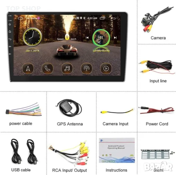 Android Radio 10,1 инча: Android радио с двоен дин с 1 GB RAM + 16 GB ROM, по-плавно и по-чувствително. С 10,1-инчов сензорен екран, по-ярък, по-отзивчив. Свържете се с WiFi или гореща точка, за лесно изтегляне на различни приложения, като YouTube, Facebook.