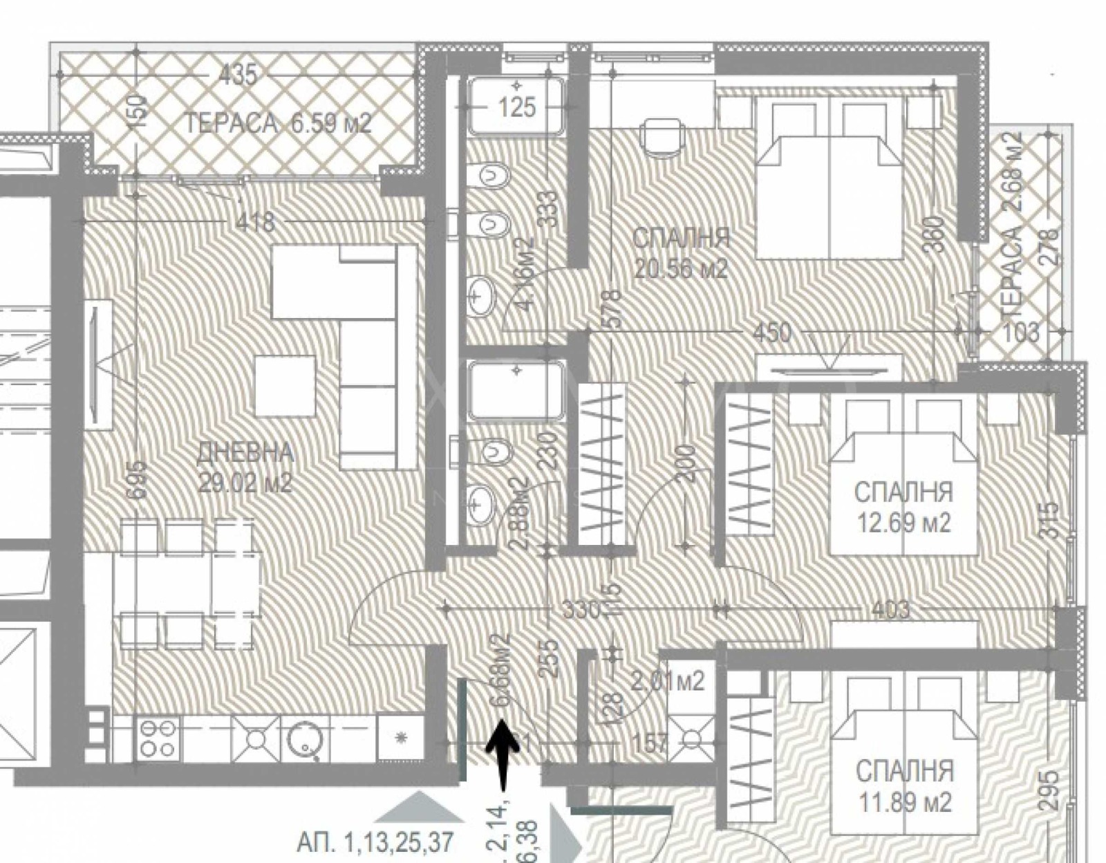 Има Акт 16! Ексклузивно представяме тристаен апартамент в OKINAWA Boutique Residence, първата сграда в България изградена изцяло според правилата на Healthy building концепцията в проектирането и строителството - оптимално здравословна среда с чист въздух и вода в градски условия. Апартаментът е разположен на 4-ти етаж и се състои от 2 спални, хол, 2 тераси, 2 бани/тоалетни, антре и мокро помещение. Имотът е с обща площ 135,73 кв.м, от които застроена площ 103,74 кв.м и допълнително склад с площ от 3.40 кв.м. Изложението е изток, югоизток и юг. Степен на завършеност по БДС ('на шпакловка и замазка'), в следния вид: всички инсталации в жилището са изградени и положени, в т.ч. електрическа инсталация, ВиК, тръбни разводки за отопление и климатизация на индивидуални газов котел, термопомпа или мултисплит система с фреонови климатици, според предпочитанията на купувача. Монтирани са стойки за външните тела на предварително определени за това, дискретни места по балконите, с цел запазване на външната естетика на сградата и нейната фасада. Поставени са контакти и ключове от Schneider Electric. Монтирана италианска блиндирана входна врата Dierre. Има възможност за закупуване на подземно паркомясто на цена от 35 000 евро (68 453 лв.). Локацията е в кв. 'Малинова долина', до 'Фантастико', на втора линия от бул. 'Симеоновско шосе', в близост до спирка на градски транспорт, бъдеща станция на метро, университетите на Студентски град, 'Околовръстното шосе', търговски център Ринг Мол и Парадайс Център, Бизнес парк София, природен парк Витошa, детски градини и училища. Eто и как са постигнати част от решенията за по-здравословен начин на живот: Японска градина; Филтрирана вода - централен самопромивен филтър, снабдяването с вода за питейни нужди, пречистена до най-високата степен; Първокласна дограма от водещата европейска марка Alumil, от серията М 11 500 Aluterm Super Plus; Фасада - високотехнологична, дишаща, комбинация от ...