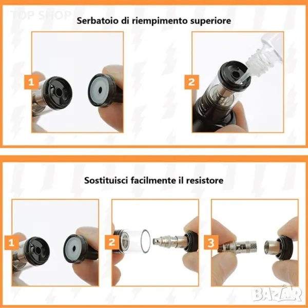 Резервоар: промяна между DL и MTL чрез просто завинтване на основата на място, за да контролирате въздушния поток.
