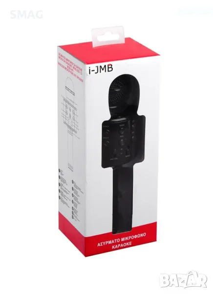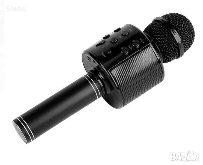 Микрофон за устройства с USB порт, TF карта, възможност за запис на песни и слушалки. С бутони за увеличаване и намаляване на силата на звука, преминете към следващата или предишна песен и бутон ON/OFF. Захранва се от вградена литиева батерия 18650 1200mAh.