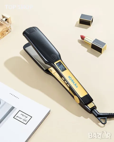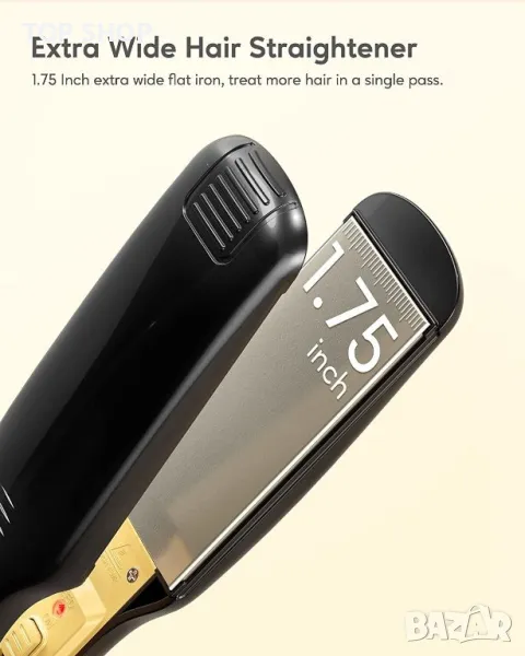 Изключително широки плочи: Тази преса изправя косата по-бързо и по-лесно. Можете да третирате повече коса с едно движение, спестявайки време при създаване на стилове. Идеален е за дълга, гъста или къдрава коса.