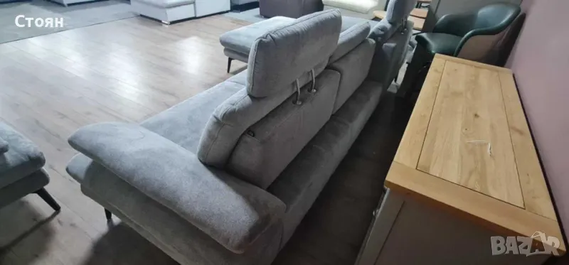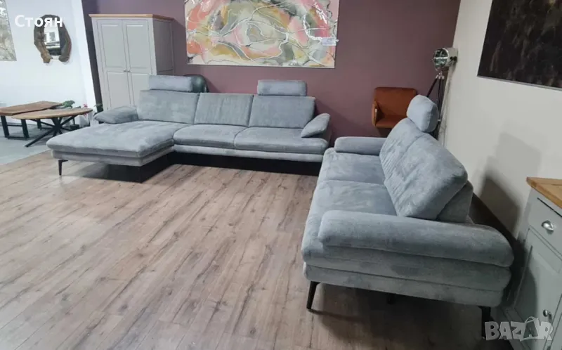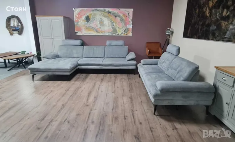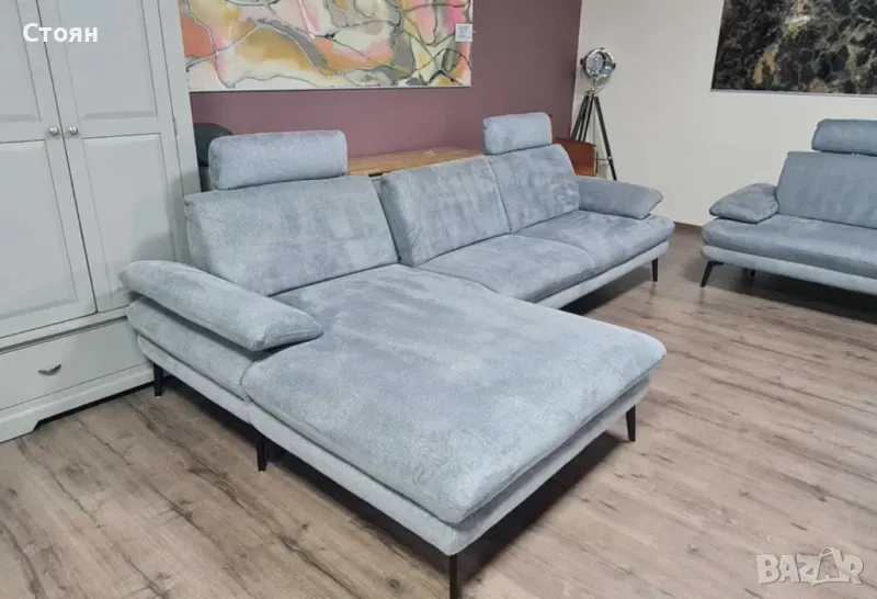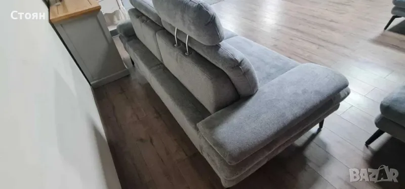 Сив комплект дивани от плат ъглов диван и тройка "Dieter Knoll"