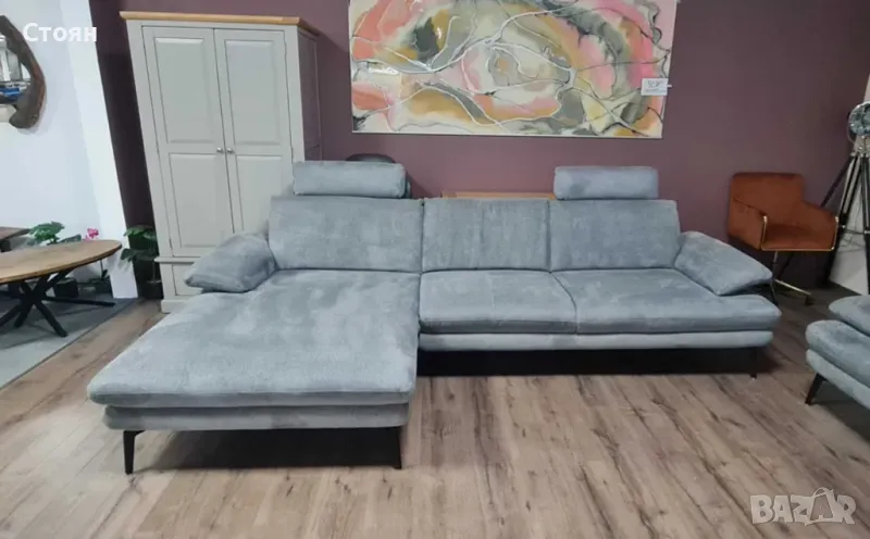 Размери: дължина на ъгловия диван - 175 х 310 см; дължина на дивана тройка - 220 см; ширина - 100 см; височина без възглавничките - 90 см; височина с възглавничките - 110 см
