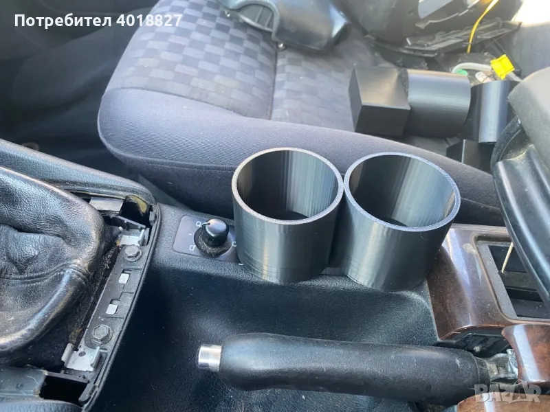 Cup holder за Audi A6 C5. Монтира се лесно в джобчето до ръчната. Отвор 60мм(може да се изработи и с друг размер) ,подходящ да кенче 0.25л и чаша за кафе. Предлагаме вариант с една или с две чашки.