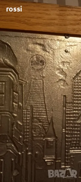 WMF Старинна немска релефна калаена картина с рамка от дъб от 1960-те години, майсторска изработка по картината на известния немски художник Carl Spitzweg /1808-1885/ с наименование Der ewige Hochzeiter/Вечният младоженец.