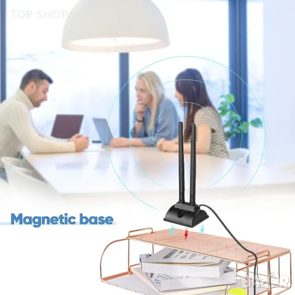 Лесна за инсталиране, магнитната основа за монтиране на антената е лесна за инсталиране, отнема само няколко секунди, за да я поставите на маса, желязна повърхност или да я окачите на стената. Поставянето на антенната мачта вертикално ще осигури по-добро приемане;