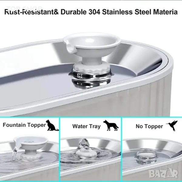 - Иноксова купа за по- добра хигиеничност.WEGOLIMME Котешки водни купички Фонтан от неръждаема стомана 2,5 л Кучешки фонтан за пиене Автоматичен