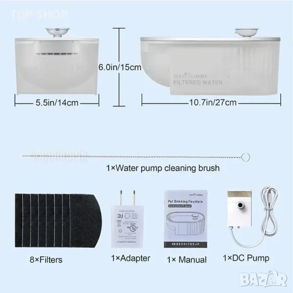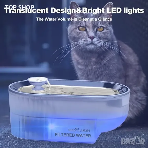 Воден фонтан WEGOLIMME 2.5 литра LED с 8 филтъра - Воден фонтан за кучета и котки от WEGOLIMME