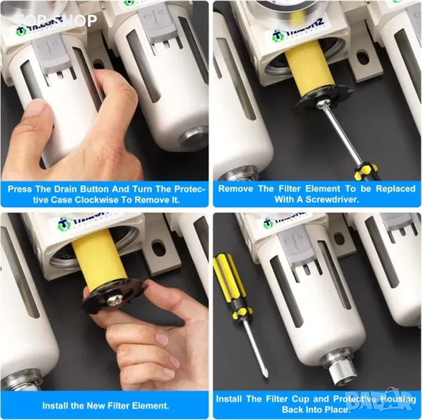 Филтър за регулатор на налягането на въздуха 3 в 1 с чаша за смазване