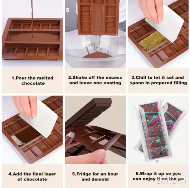 3D Дубайски шоколад 6 малки правоъгълни плочки Силиконов молд форма → Обява 48634037