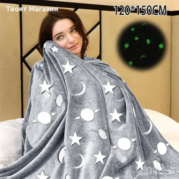 Детско одеяло светещо в тъмното, 120х150 см. → Обява 48634880