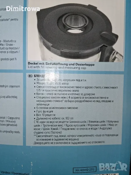 - Купата за смесване, ножовете и капакът могат да се почистват в съдомиялна машина