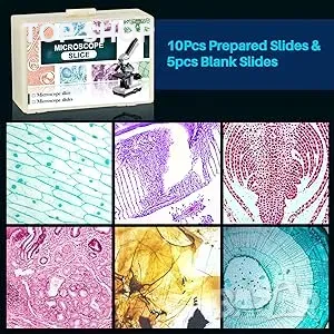 10 броя, приготвени от остриета на растения, насекоми и животински тъкани и 5 броя празни остриета.