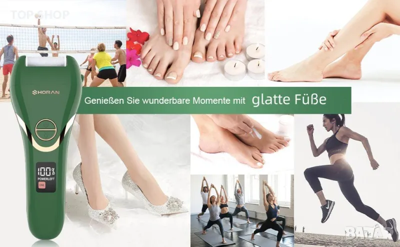 SHORAN Акумулаторна професионална електрическа пила,3 накрайника,грижа за краката