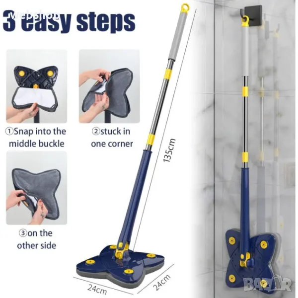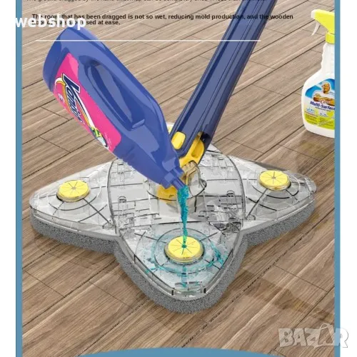 Инвестирайте в новото измерение на почистването с нашия иновативен четириъгълен Spin Mop с 360 градусова въртяща се глава!