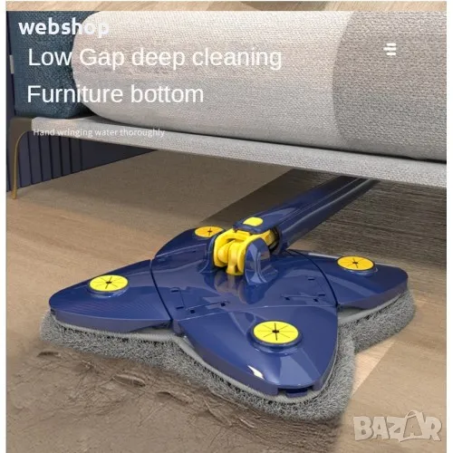 Ефективно почистване на труднодостъпни места: Благодарение на уникалната четириъгълна форма, мопът лесно достига до ръбове и ъгли, осигурявайки безупречна чистота.
