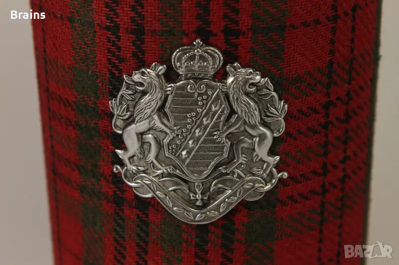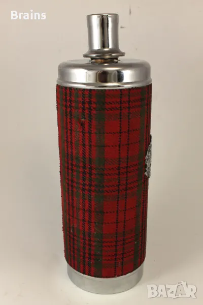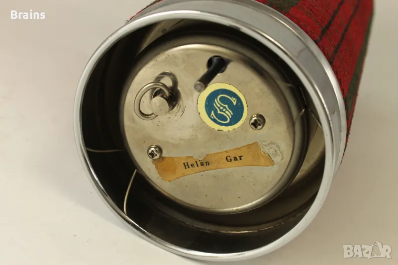 Стар Шведски дозатор за алкохол с музикална механична латерна отдолу. При повдигане на дозатора латерната започва да работи. Стъклен с платова обшивка. В отлично визуално състояние, латерната работи отлично.