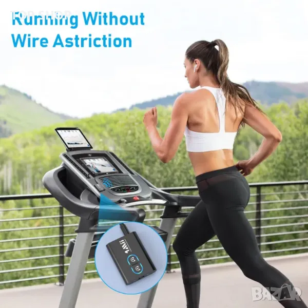 Безжично предавайте аудио от фитнес оборудване с 3,5 mm аудио порт към вашите безжични слушалки или слушалки.