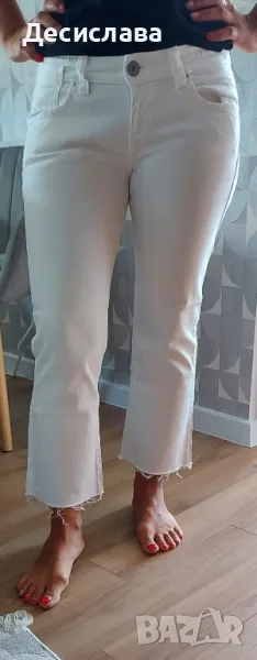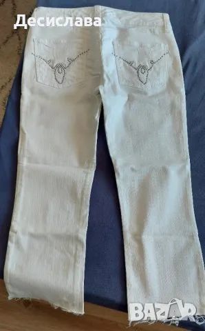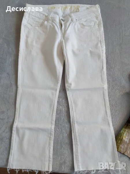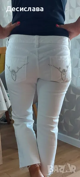 Предлагам бели дамски дънки с ниска талия и орнаменти на задните джобове.