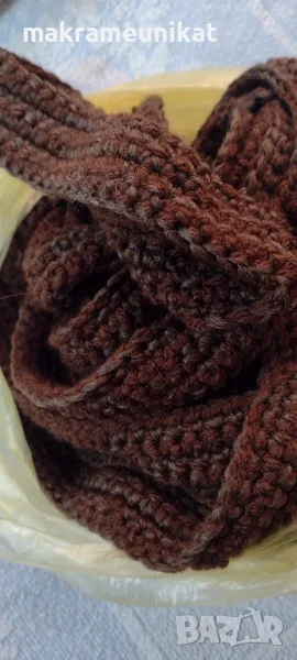 Плетени на една кука от тънко кафява вълна, имат леко разтегливост.