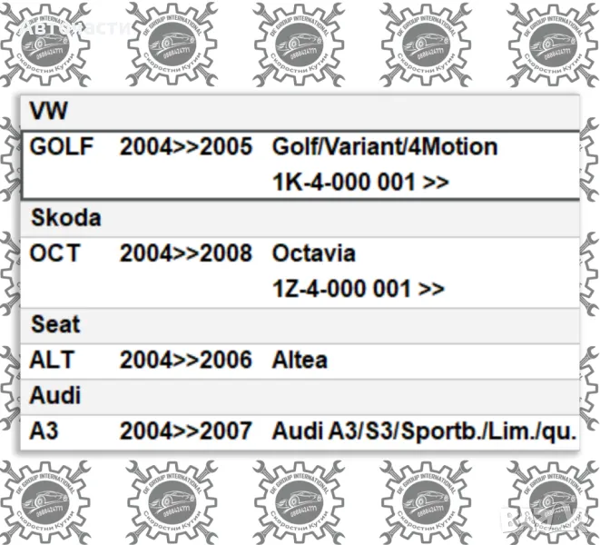 Възможно съответствие с други модели, години на производство, оригинални номера (ОЕМ), кодове на двигатели, кубатура и конски сили - Audi/Volkswagen/Seat/Skoda - VAG Group.