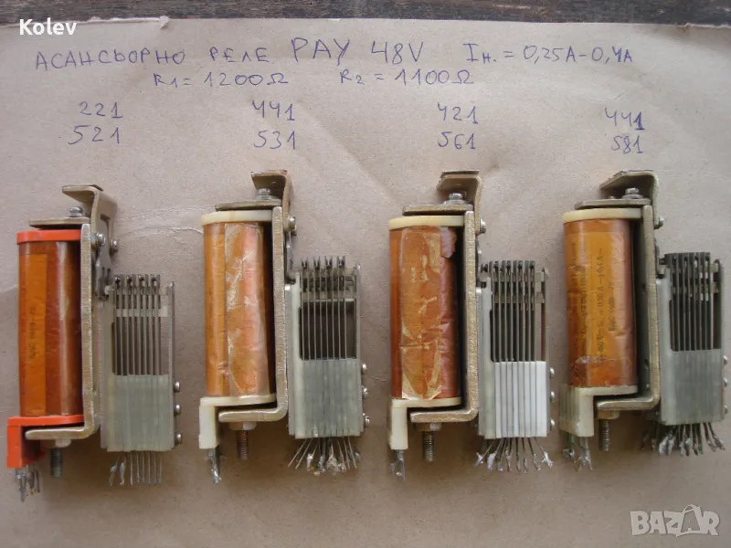 Български асансьорни релета РАУ 48 волта. Четири различни модела. Цена за брой. Релета с номера 561 и 581 са продадени!