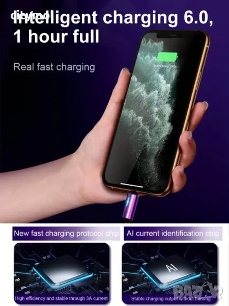USB A към USB C - USB 2.0 480Mbps, за бързо зареждане до 80W (нужно е подходящо зарядно устройство)